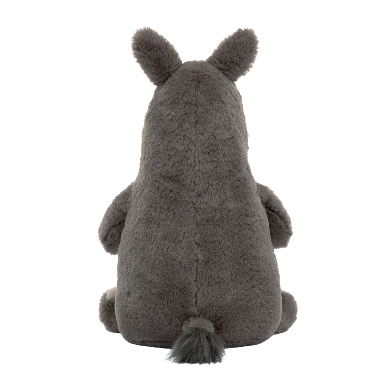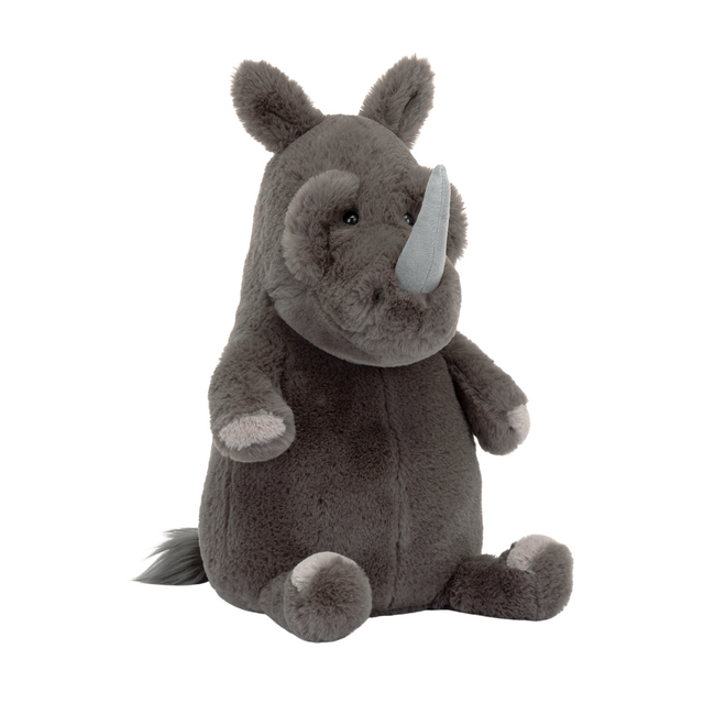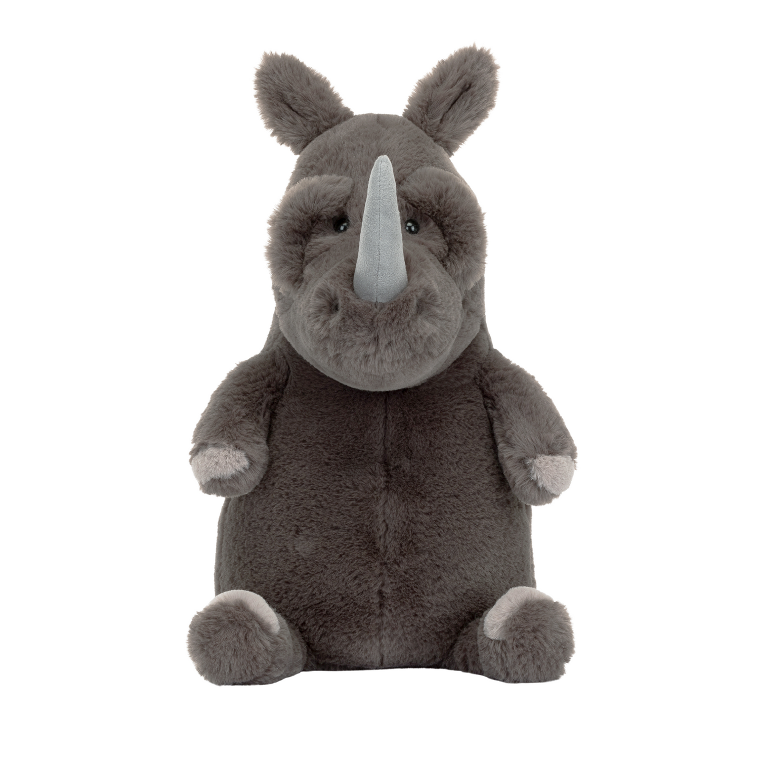 Roderick Rhinoceros is a sturdy guy and a fiercely loyal friend. This rhino is rocking a rumpled brow, petal ears and a big suedette horn. With scrumptious grey fur, a huggable tummy and a fuzzy tail with silky plume, he's stomping about in style! Tons of texture for curious hooves