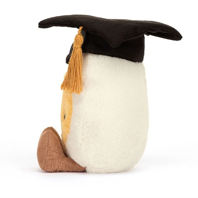 Amuseables Boiled Egg Graduation can't wait to celebrate! With super-soft fur in cream and yellow, and a cotton mortarboard with golden tassel, this egg has a masters in sharing joy!