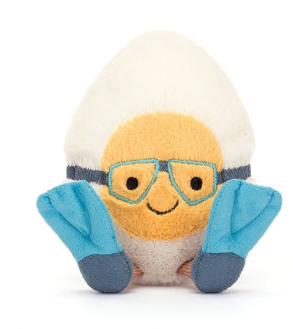 Amuseables Boiled Egg Scuba can't wait to explore! With super-soft fur in cream and yellow, embroidered goggles and blue suedette flippers, this egg is ready to dive for cuddles!
