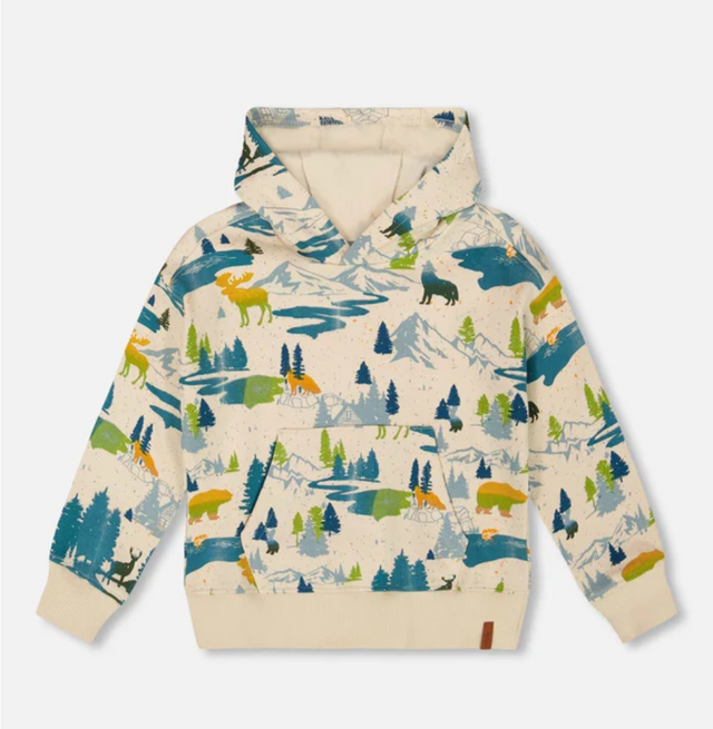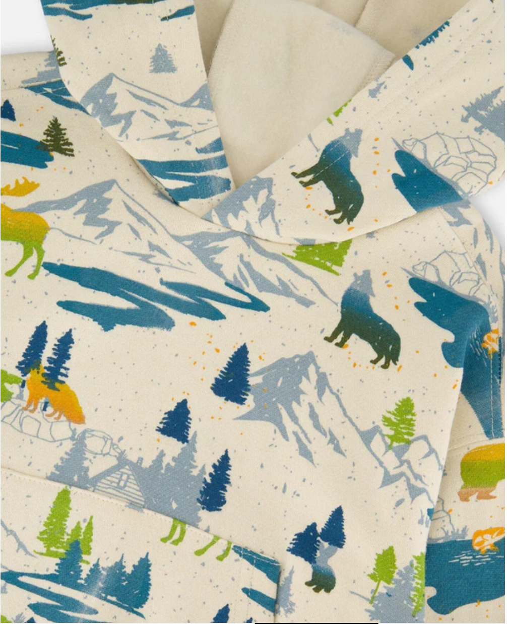 Deux Par Deux Printed Hooded Fleece Sweatshirt Beige - 2 is backordered and will ship as soon as it is back in stock.