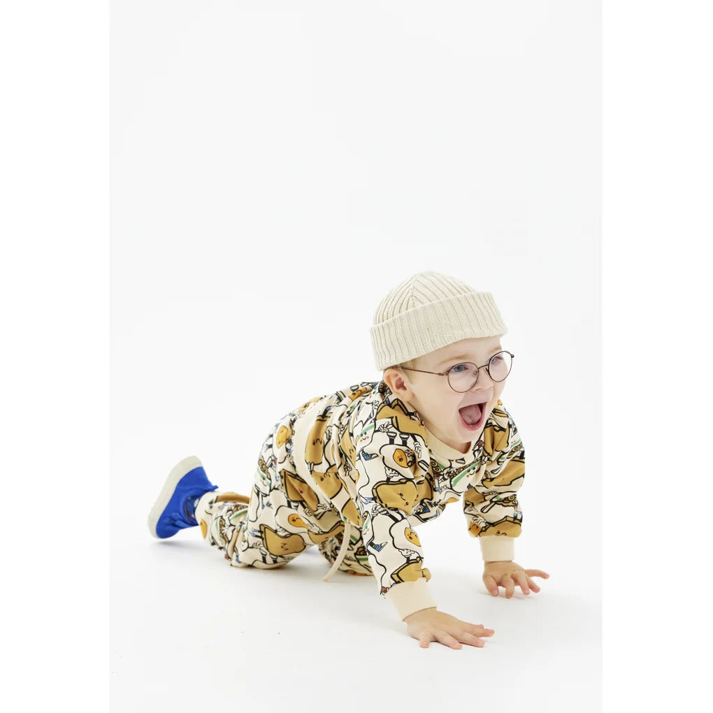 Cool baby sweatshirt in a colorful AOP pattern with various breakfast products. The sweatshirt's fine rib edges give it a stylish look and a good fit. This warm and cozy sweatshirt from THE NEW siblings is perfect for both everyday wear and relaxing at home. Pair it with the matching TNSTNelson sweatpants for a nice set.
