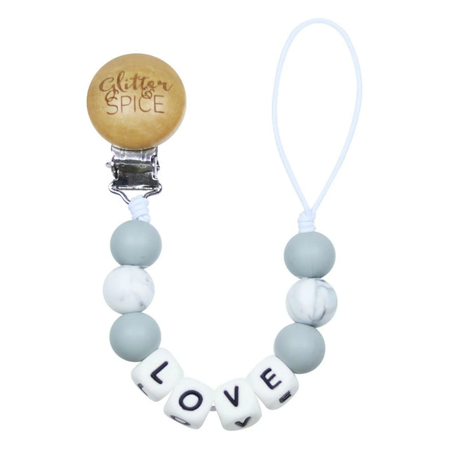 Glitter & Spice - Pacifier Clip - Love (Blue)