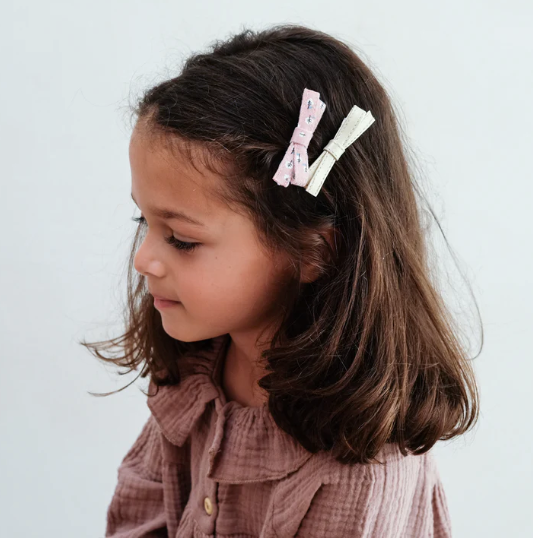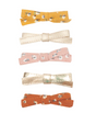 Introducing our Betty bow clip pack, a scrumptious seasonal mix of floral fabric and soft metallic hand tied bows to sweeten up any hair style!