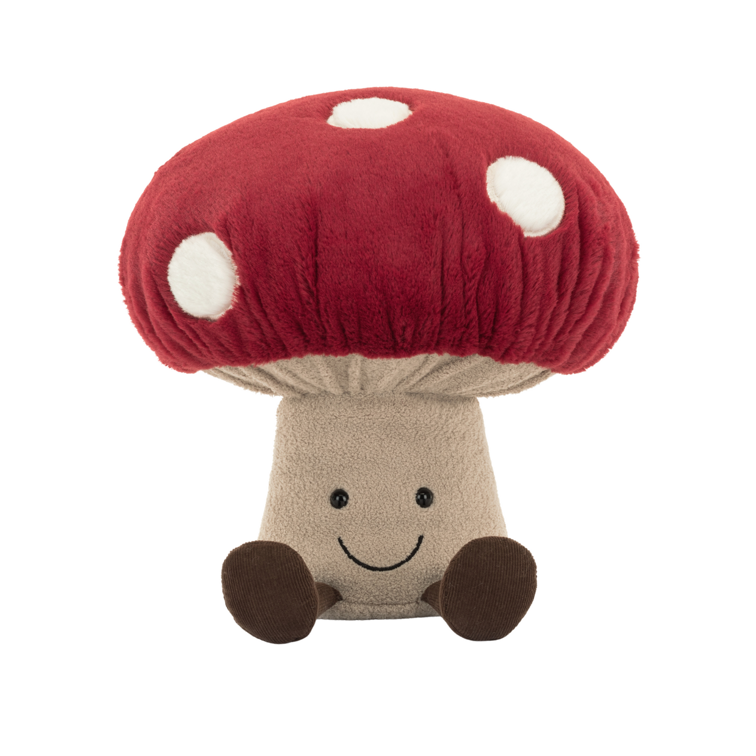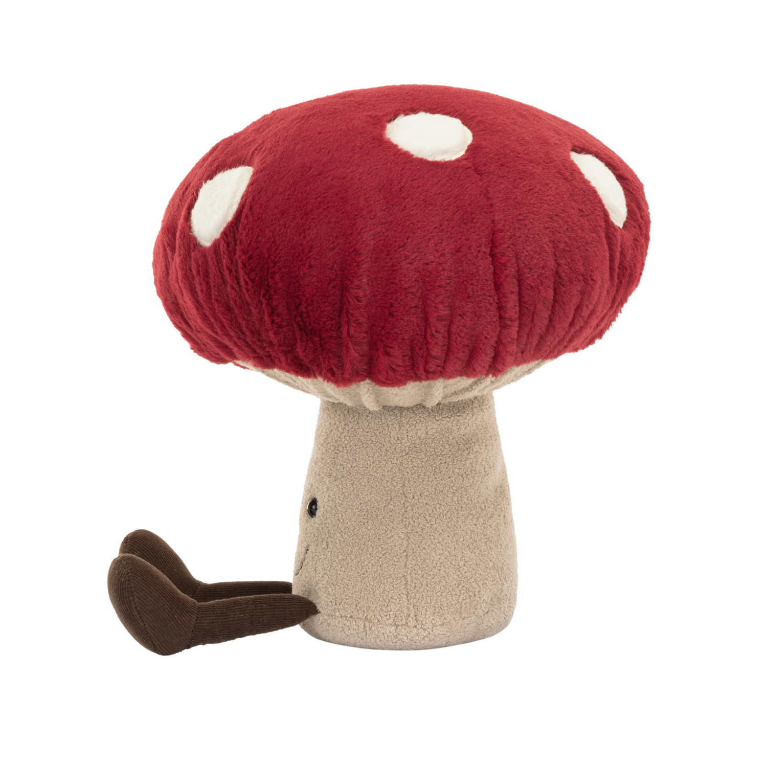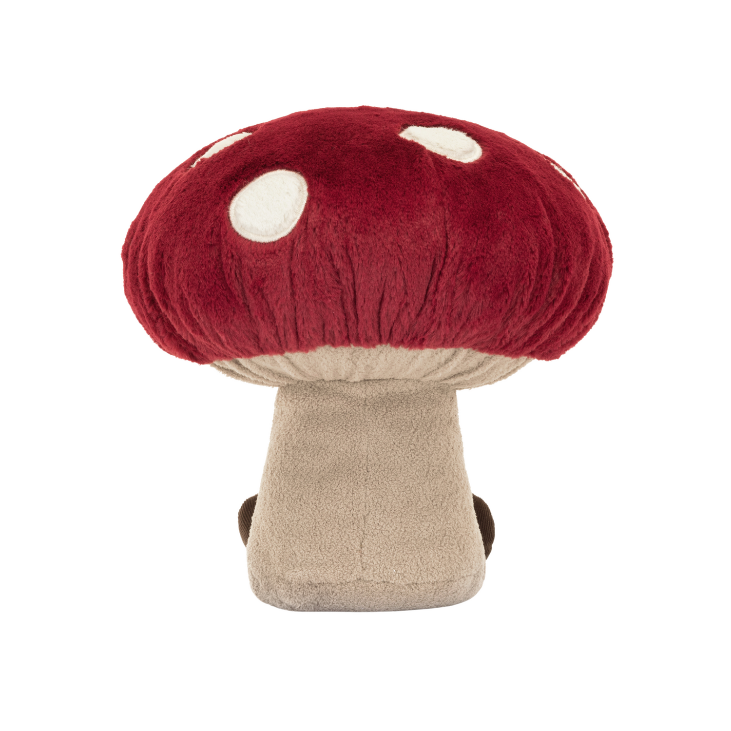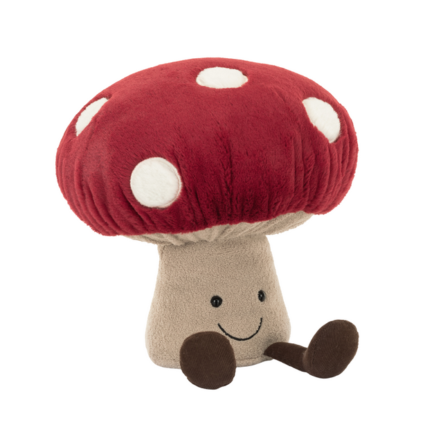 Amuseables Mushroom is a natural wonder! This forest scamp has a sturdy fur stalk and a plump red cap with cream embroidered spots. Lovingly detailed with ruched beige frills, a weighted base and chocolate cord boots, this mushroom sits well on your desk or windowsill.