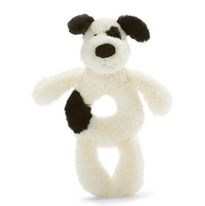 Jellycat Bashful black & cream Puppy Ring Rattle