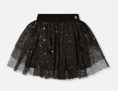 Deux Par Deux Multi Layer Glittering Mesh Skirt Black