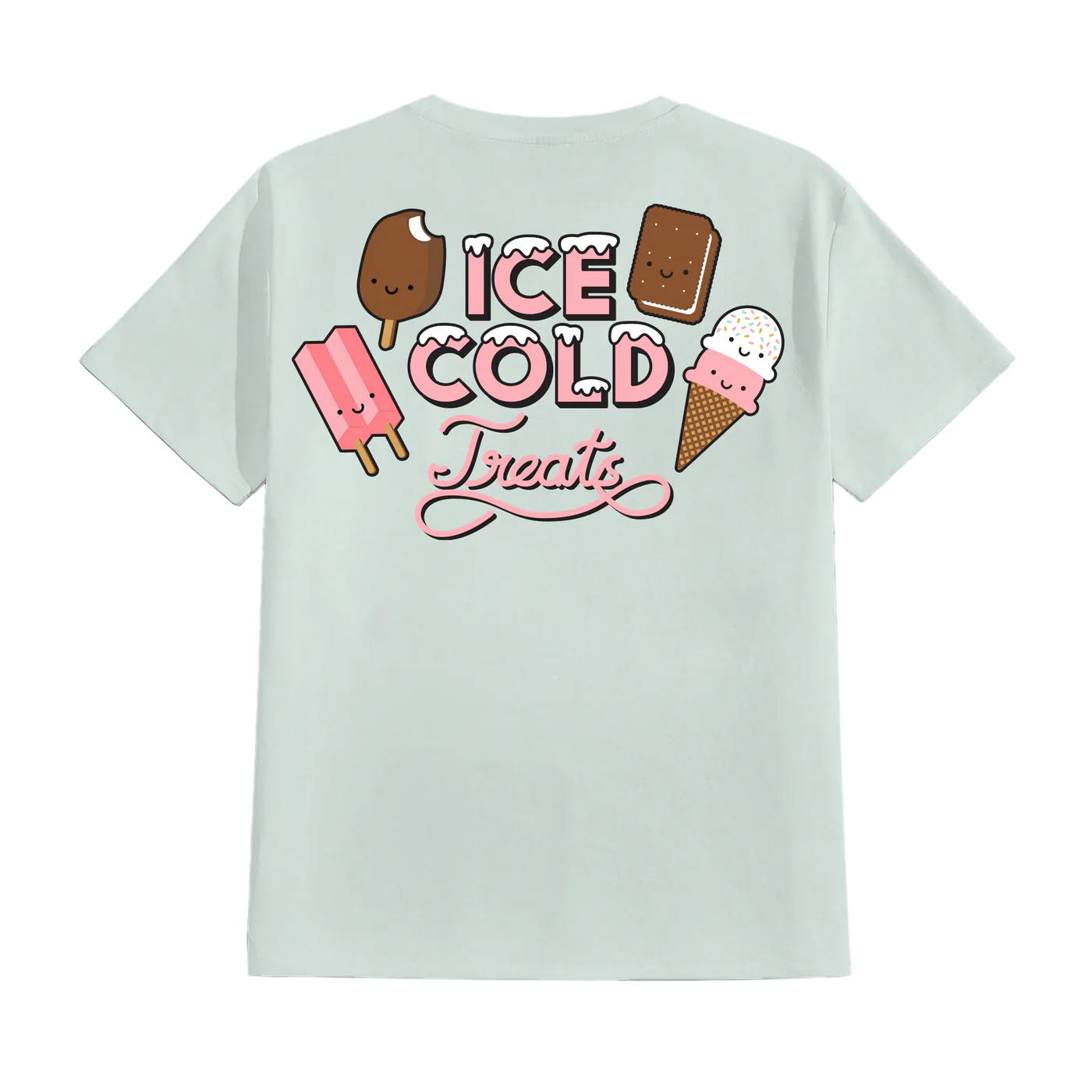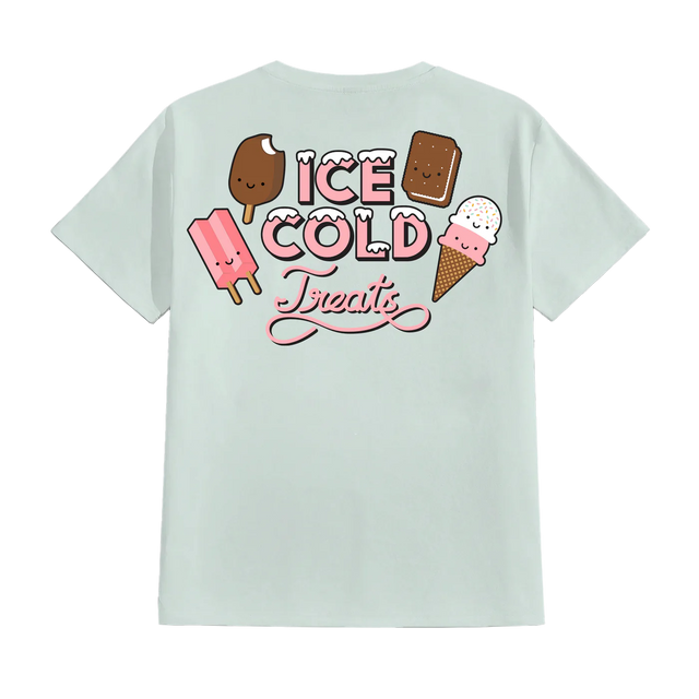 Our brand-new Kawaii Ice Cold Treats design features our fan-favourite frozen treats with all new ice-block text screen printed in full-colour on the left chest and back of a minty fresh, 100% cotton T-shirt.