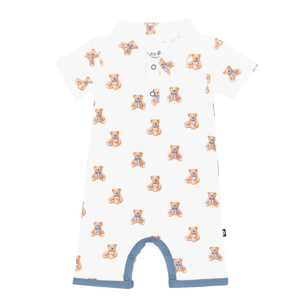 Kyte baby Polo Shortall in Teddy Bear - 3-6M is backordered and will ship as soon as it is back in stock.