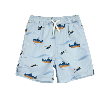 Petit Lem Submarine Print on Pearl Blue Swim Trunks