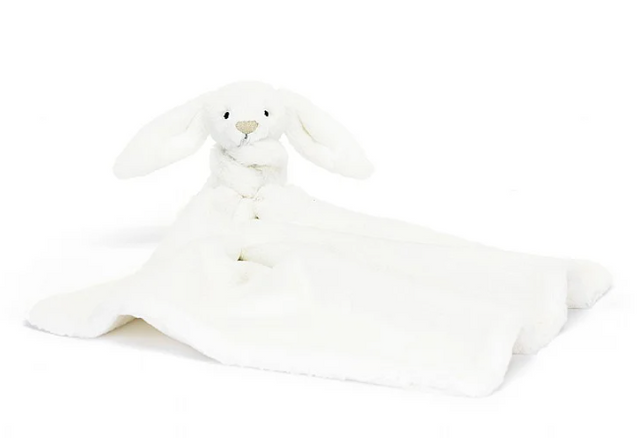 Bashful Luxe Luna Bunny Soother is irresistible to touch in our softest pure white fur. A timeless newborn gift, this lop-eared bunny holds our finest soother: a sumptuous cloud for newborns to doze with. Crafted with stitched eyes and gold thread nose, this soothing bunny is ready to gift in a satin sheen gift box with gold foil detail and matching gift card.