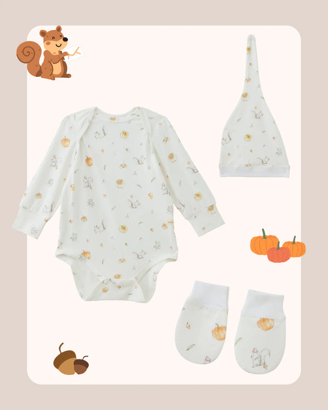 Blara Organic Gift Box Natural Color with Squirrel Print - newborn is backordered and will ship as soon as it is back in stock.