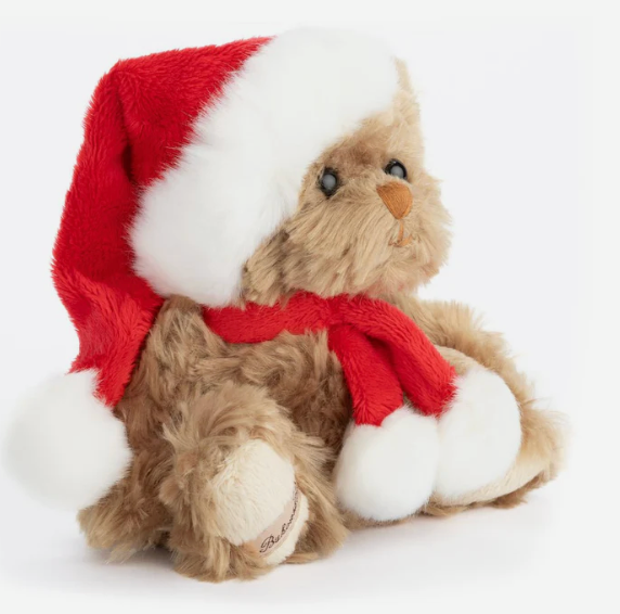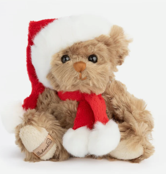 Introducing Baby Tomtenisse, the cuddly brown bear with delightful curly fur, a festive Santa hat, and a cozy scarf! This charming plush bear is ready to bring holiday cheer to your home. With his warm, inviting smile and huggable body, Baby Tomtenisse is the perfect companion for snuggling up during chilly winter nights or joining in on Christmas festivities.