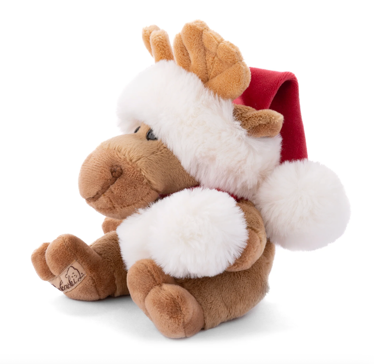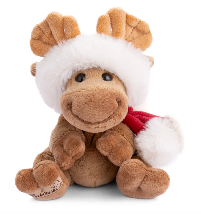 Meet Baby Benny X‑Mas, the jolliest mini moose in the forest. Designed in Sweden by Bukowski Bears, Benny brings instant holiday cheer with his plush Santa hat trimmed in fluffy faux fur, a cozy red scarf, and the warmest, friendliest smile. His velvety caramel plush and gently weighted feel make him perfect for cuddles by the tree, stocking surprises, and snowy storytime snuggles.
