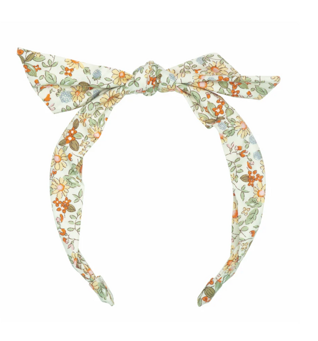 A beautiful headband made with our gorgeous bramble floral fabric, featuring a hand tied top knot, and designed to provide a comfortable fit for little heads.