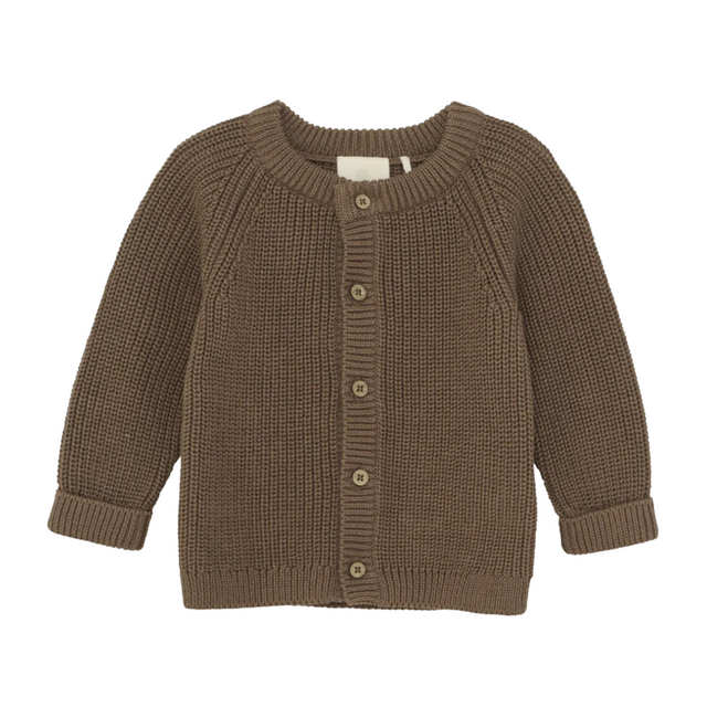 En Fant Knit Cardigan - Pine Bark - 12m is backordered and will ship as soon as it is back in stock.
