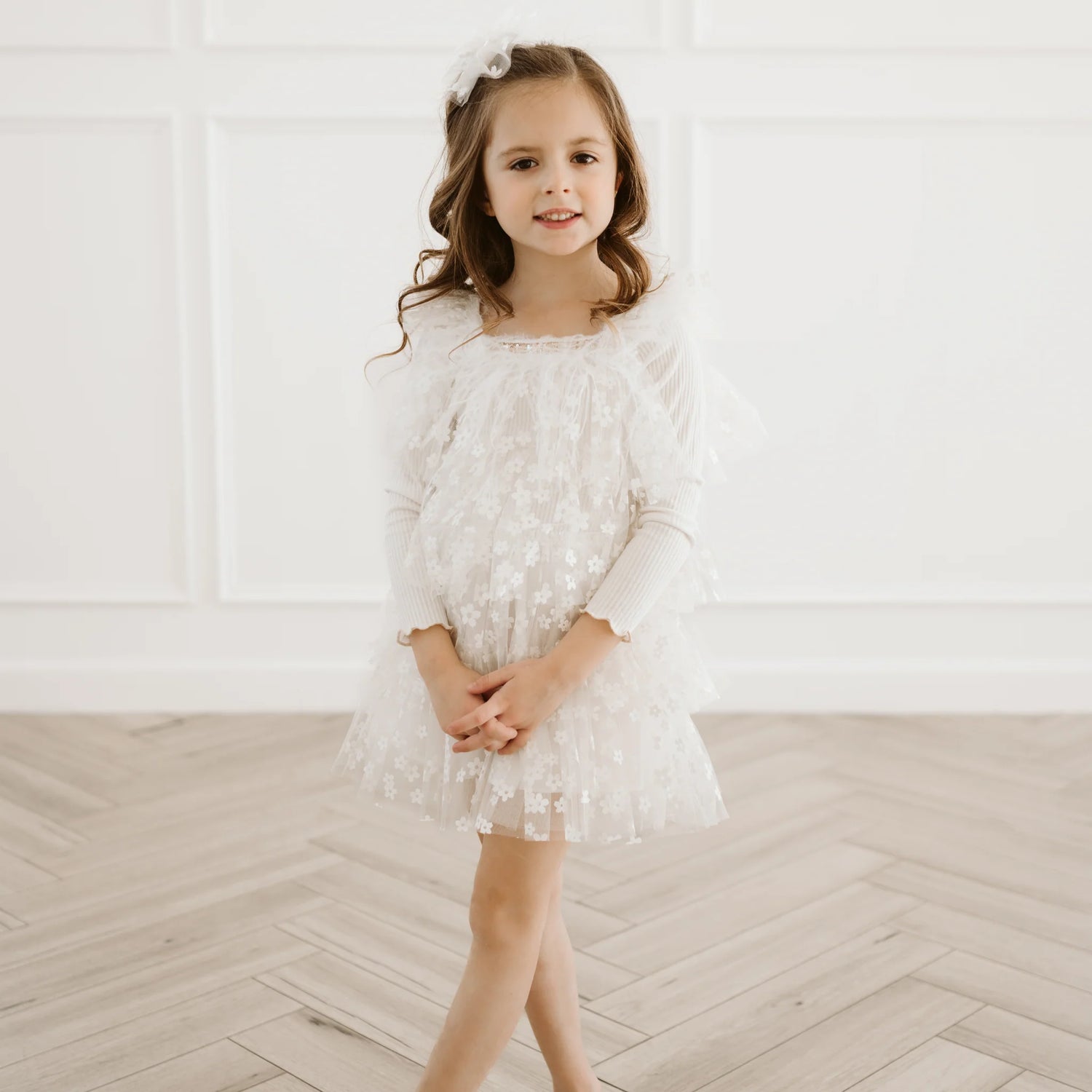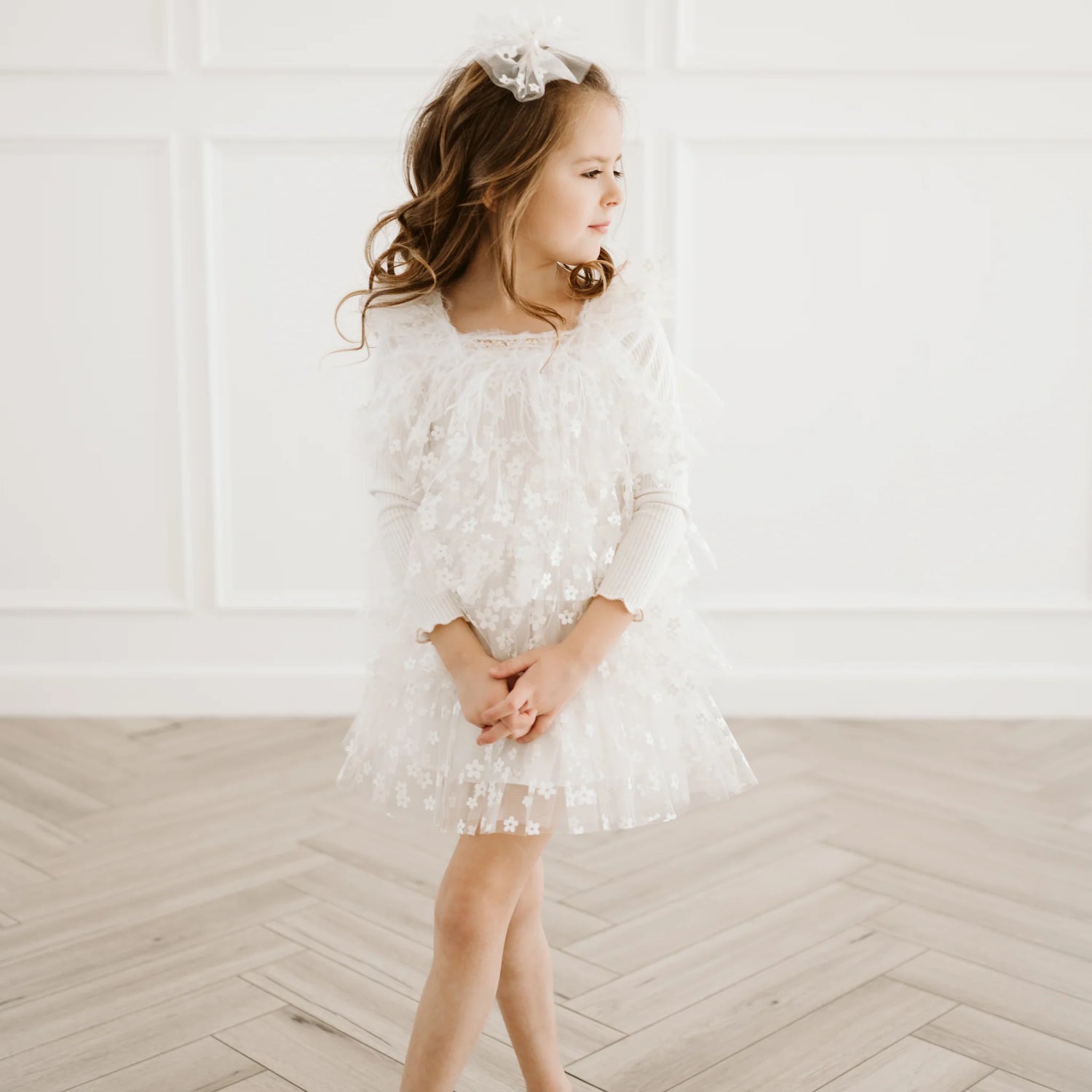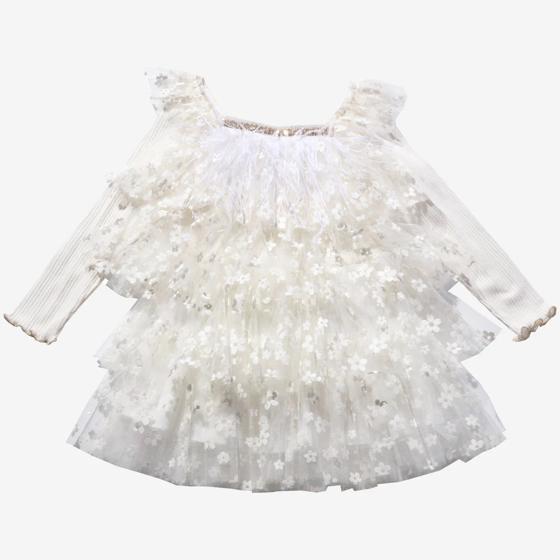 PETITE HAILEY Layered Flower Dress - Ivory