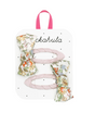 A beautiful set of two hand-tied bows made from our bramble floral fabric. Both are set on to pink grosgrain ribbon wrapped snap clips.