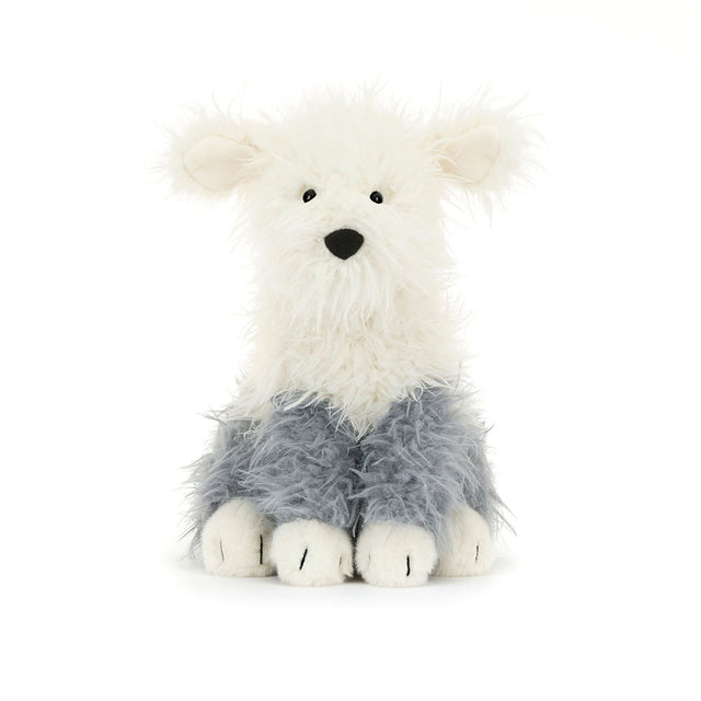 Ewert Sheepdog is here to play, round up joy, and share cuddles! In long, textured cream and grey fur with bright eyes and long tail, Ewert has stitched paw detail and a big, boopable black suedette nose. The perfect gift for dog lovers of all ages!