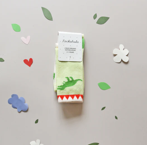 Our two pack of super soft socks feature our iconic t-rex print! Made with organic cotton, they're perfect for everyday activities.