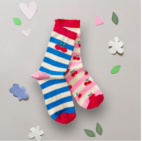 Rockahula Cherry Stripe 2 Pack Socks 6-8 years old