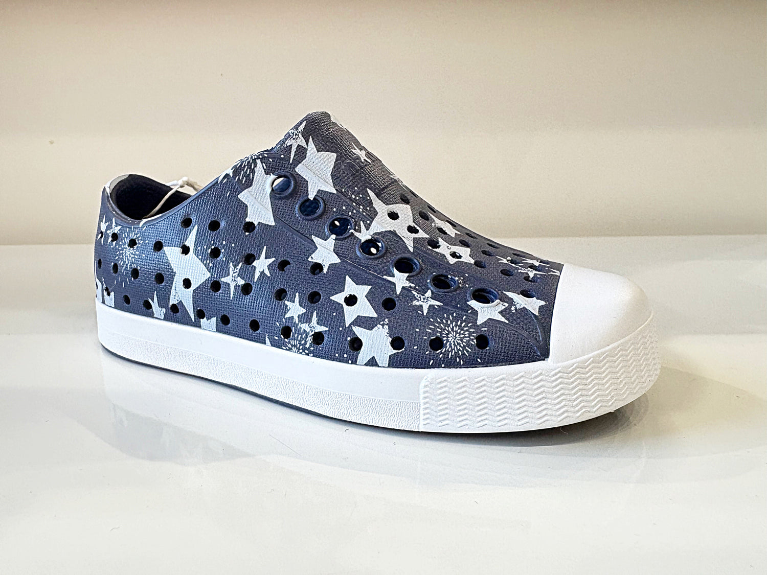 It's the leader of lite-ness and our original EVA all-star, the uncompromisable Jefferson. Like any reigning ruler of the ring, the Jefferson encompasses all of the fine features that you'd expect from a Native shoe. It's shock absorbent, odor resistant, hand-washable, and comes in an infinite assortment of colors and treatments. Capabilities clouds could only dream of.