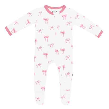 Ribbed Ruffle Zipper Footie in Apple Blossom
