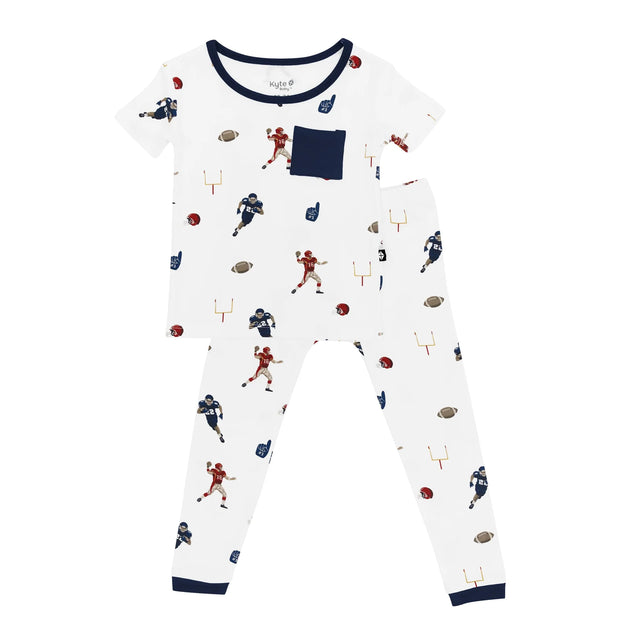 Kyte baby short sleeve pajamas in Football - 3 is backordered and will ship as soon as it is back in stock.