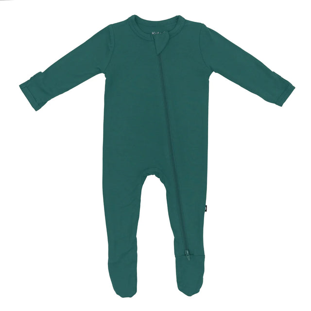 Zippered Footie in Emerald - newborn is backordered and will ship as soon as it is back in stock.