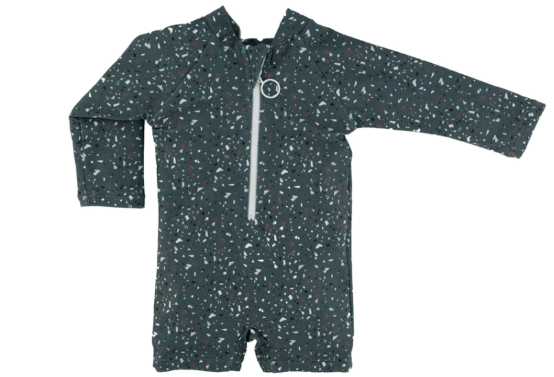 This stunning earth toned “Quinn” print features black, white and brown toned terrazzo flecks arranged on a stunning cool green tone. Bold and consistent, the overall aesthetic of this suit is warm and earth - yet still neutral and consistent. The "Quinn" pairs like a dream drawing in any tone you layer drawing upon the strong solids. This print does not disappoint and will be without doubt a favourite for everyone.