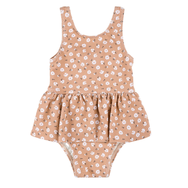 Petit Lem Ditsy Daisies Print on Wild Rose Skirted Swimsuit