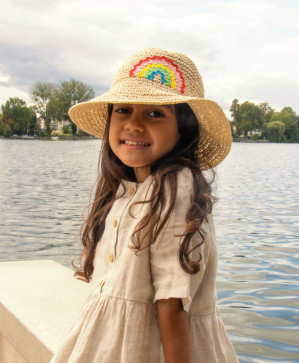 Our ric rac rainbow hat is the perfect hat for sun-filled adventures. With a bright coloured ric rac rainbow embellishment this hat will keep you feeling super cool and looking super cool.