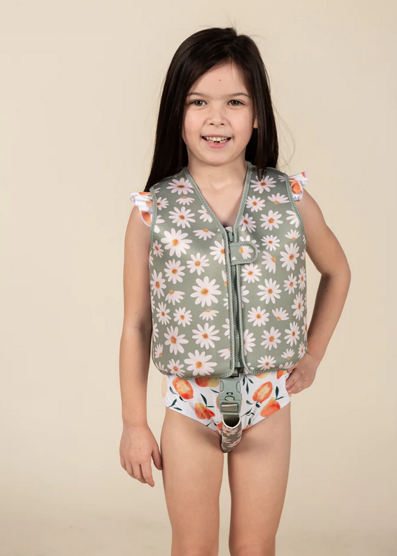 Current Tyed "Sea" You on Top Float Vests - Sage Daisies - M (3-6Y 40-66lbs) is backordered and will ship as soon as it is back in stock.