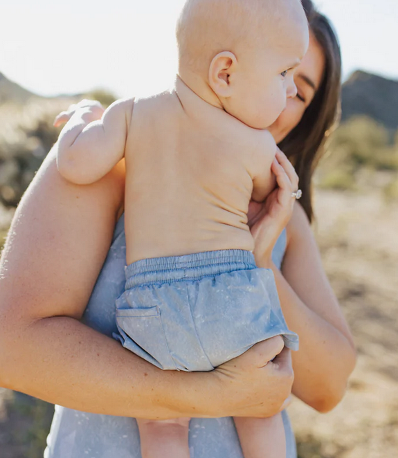 Soft, light and breathable - these boardies combine comfort and style into one. Our Euro style design hits mid thigh on the front and lower leg on the back for better coverage. Inside you will find an ultra comfortable mesh liner and active drawstring for the perfect fit. Our design can size up very well for longer wear, otherwise they will fit TTS. Easy on, easy off your little ones will look good and feel better in these ultra comfortable shorts! Gender neutral in design, these are a great full coverage option for the girls and boys in your life!