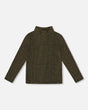 deux par deux Shiny Rib Mock Neck Top Black And Gold