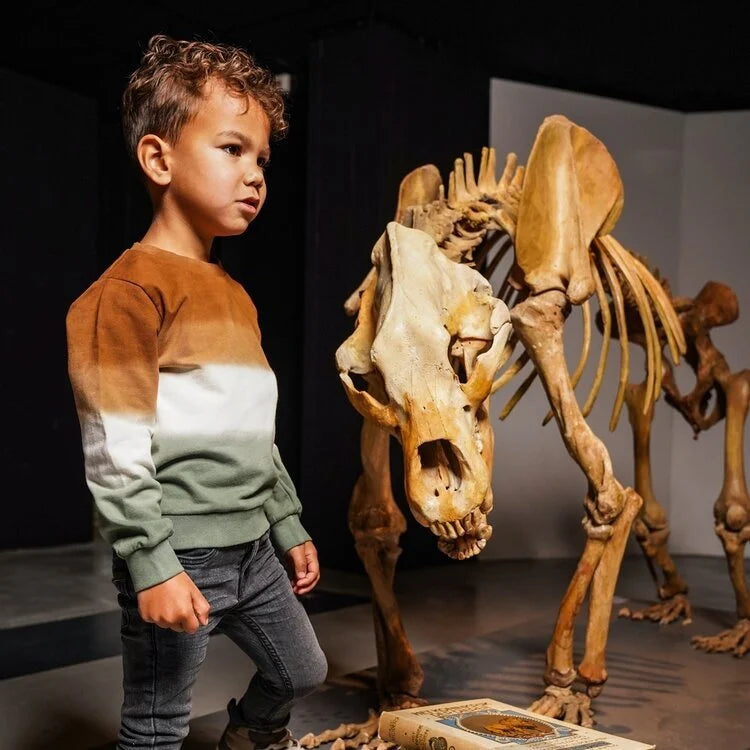 Let your little adventurer shine in the Koko Noko sweater! This off-white boys' jumper has a cool ombre print in shades of green and brown, perfect for boys who love colour. Made from soft cotton with stretch, the sweater offers plenty of freedom of movement. Sizes up to 86 have handy press studs on the shoulder for extra ease when putting on and taking off.