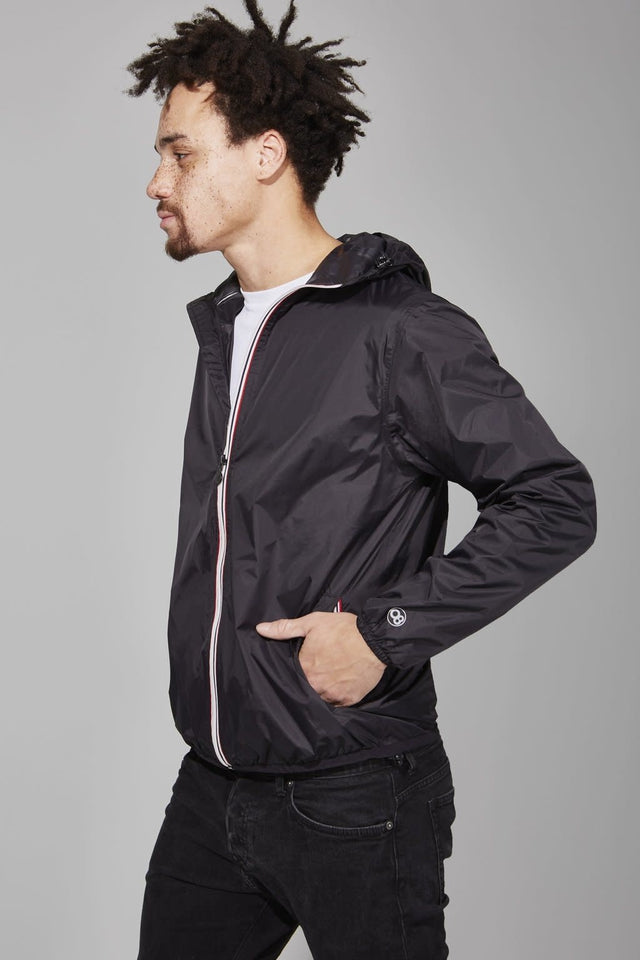 When it comes to stocking your wardrobe with a go-to rain jacket, this is the one. Our full-zip windbreaker is waterproof and breathable, with heat-sealed seams. It also folds into its own side pocket with a handy clip that easily attaches to a bag, backpack, belt loop, you name it… so you can bring it along wherever you go.