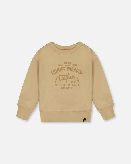 Deux Par Deux Pullover Graphic Sweatshirt Beige