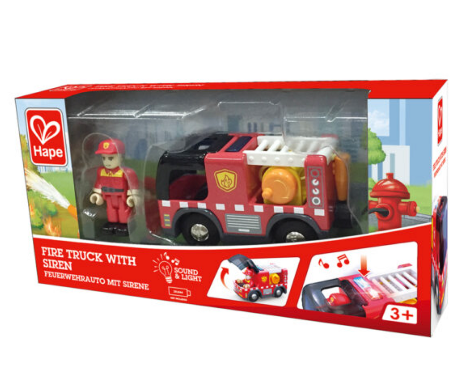 FIRE TRUCK W/SIREN – HAPE is backordered and will ship as soon as it is back in stock.