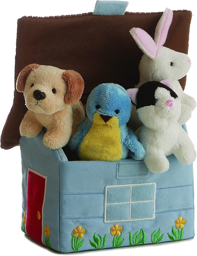 • Plush barn house with corduroy roof, handle and Velcro closure to neatly store the animals