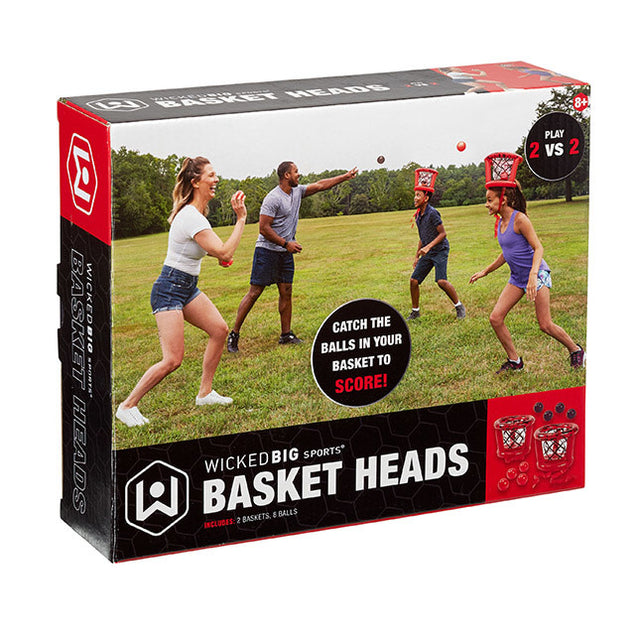 You’re bound to laugh while playing a competitive game of Wicked Big Sports Basket Heads! Grab a partner and find 2 opposing teammates. One person in each pair jes a basket to their head and then their partner tries to get all four balls into the basket before the other team! It’s a fast-paced, compejjve game where you can show off your skills or rely on luck – either way you’re going to look a basket case! Each set includes 2 inflatable baskets with straps and 8 balls.