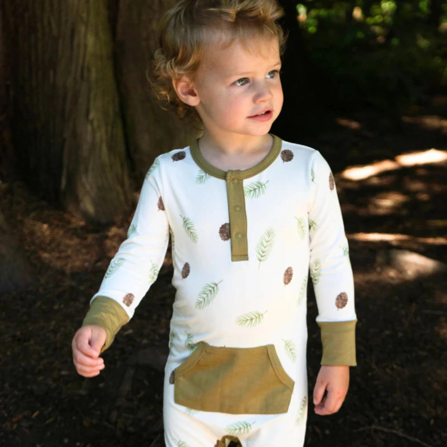 Belan J L/S Pocket Romper - Pine Cones