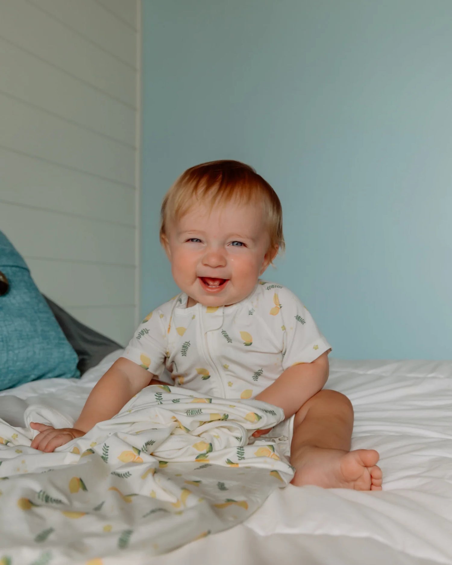 Blara Organic Short Sleeve Romper - Lemon Print - 1-3M is backordered and will ship as soon as it is back in stock.