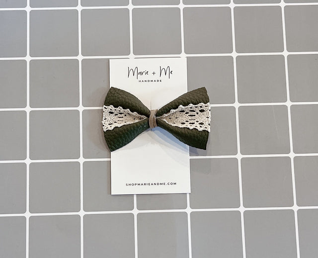 Marie + Me Stella Lace Bow - Forest is backordered and will ship as soon as it is back in stock.