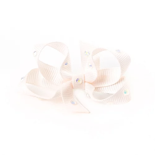 Small grosgain bow with Swarovski crystals on an alligator clip.