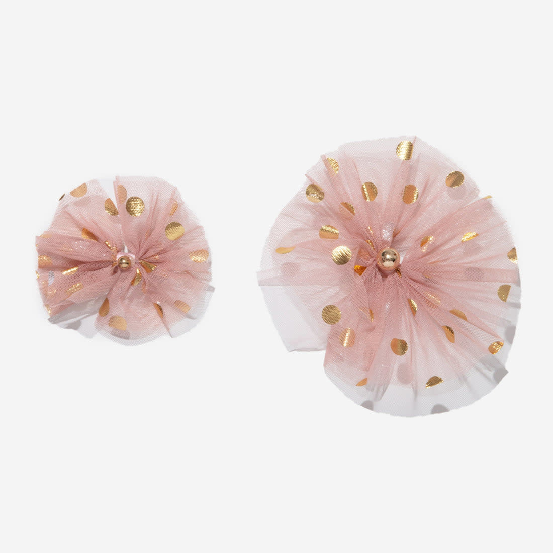 Petite Hailey Gold Dot Bow Clip - Pink - M is backordered and will ship as soon as it is back in stock.
