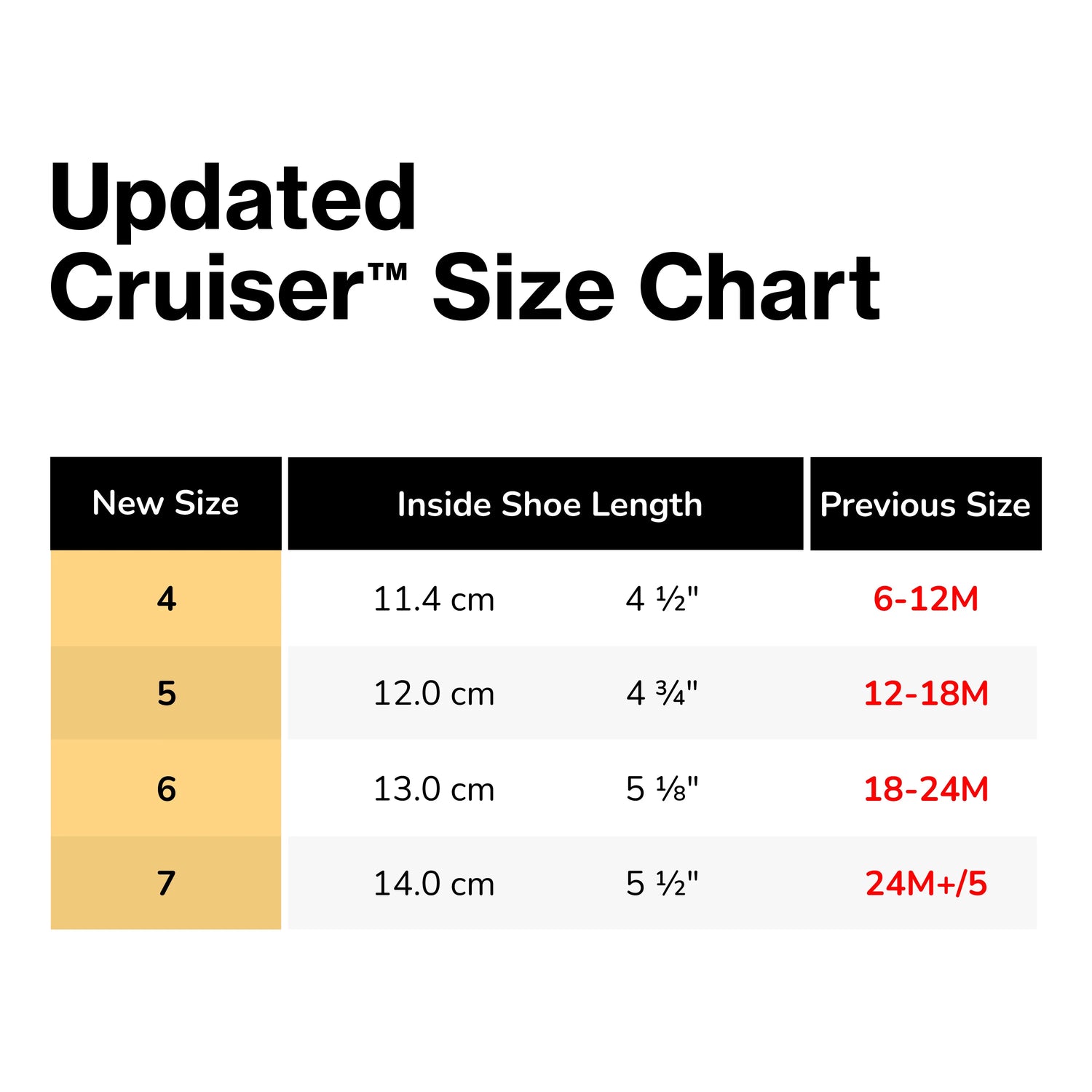 Breathable and lightweight, the APMA-recognized Cruiser Original supports early walkers with a zero-drop sole, wide toe box, and natural rubber outsole for healthy movement. Its flexible design and air mesh upper ensure comfort and breathability. Machine washable and featuring an easy-on hook and loop closure, these shoes are durable, convenient, and perfect for little ones.