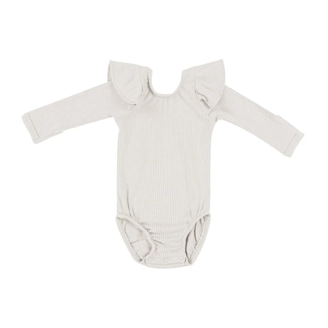Kyte Baby Ribbed Long Sleeve Ruffle Leotard in Oat