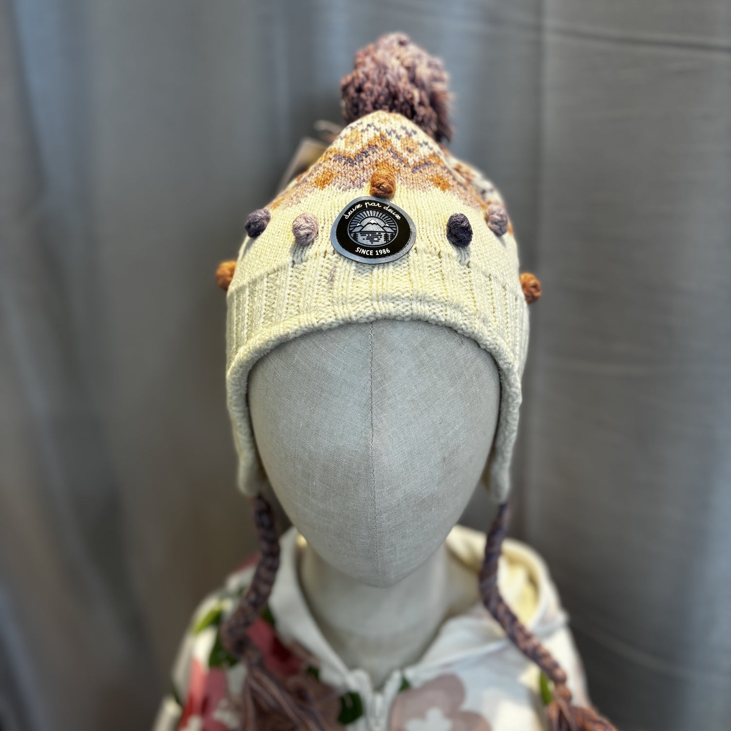 Deux Par Deux Lined Knit Pompom Hat Off White Jacquard