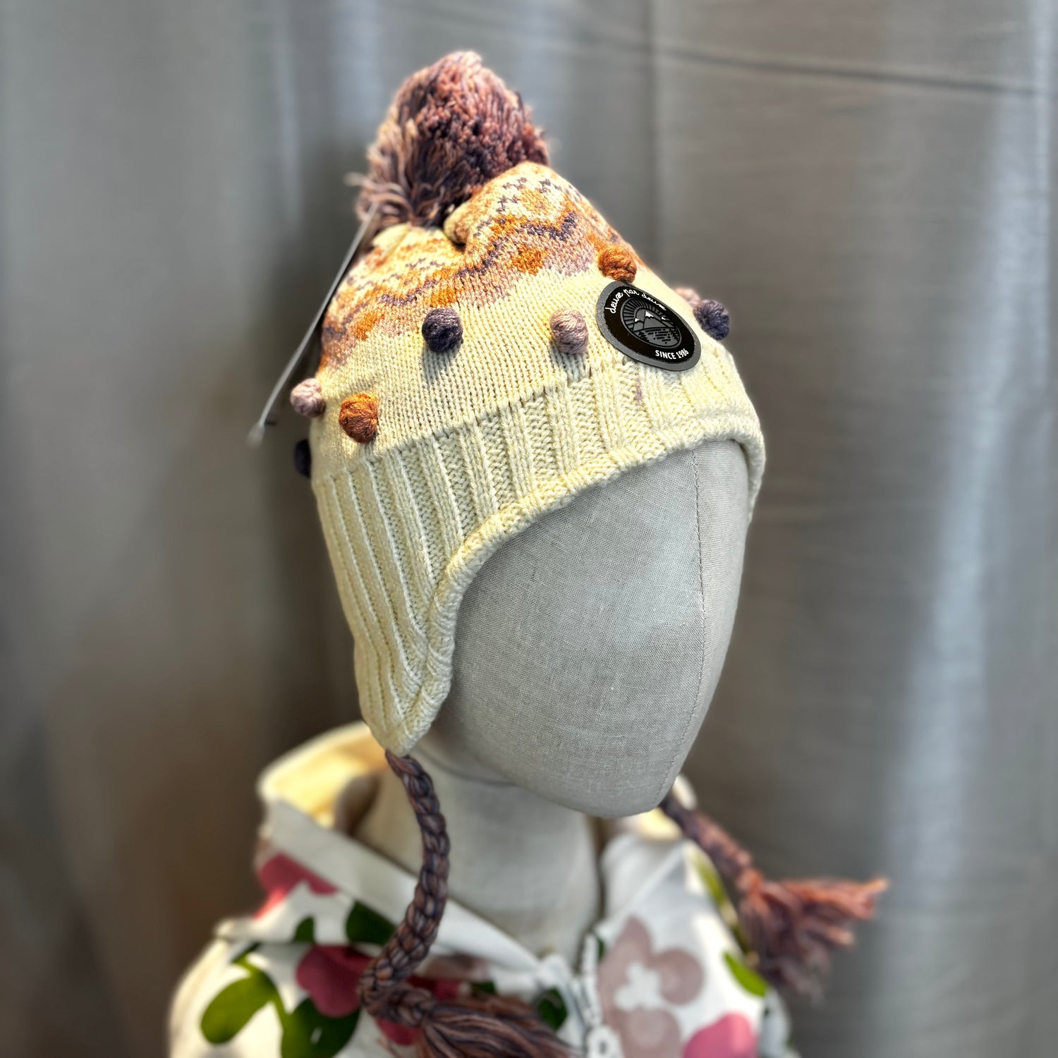 Deux Par Deux Lined Knit Pompom Hat Off White Jacquard - 6-12m is backordered and will ship as soon as it is back in stock.
