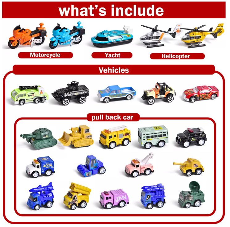Every day becomes Christmas with this incredibly fun Advent Calendar with Cars! Your kids will fall in love with this Christmas countdown calendar! Your car-loving children will wake up every day with excitement to add a new toy car to their collections. They'll want to take them everywhere they go. Use the opportunity to teach them what the items are, what color it is, and have them work for their daily goals, using the advent calendar as a reward. Make it a part of your morning routine, every day, for 24 days until the big Christmas day. Build up excitement towards the big day with this surprise box.